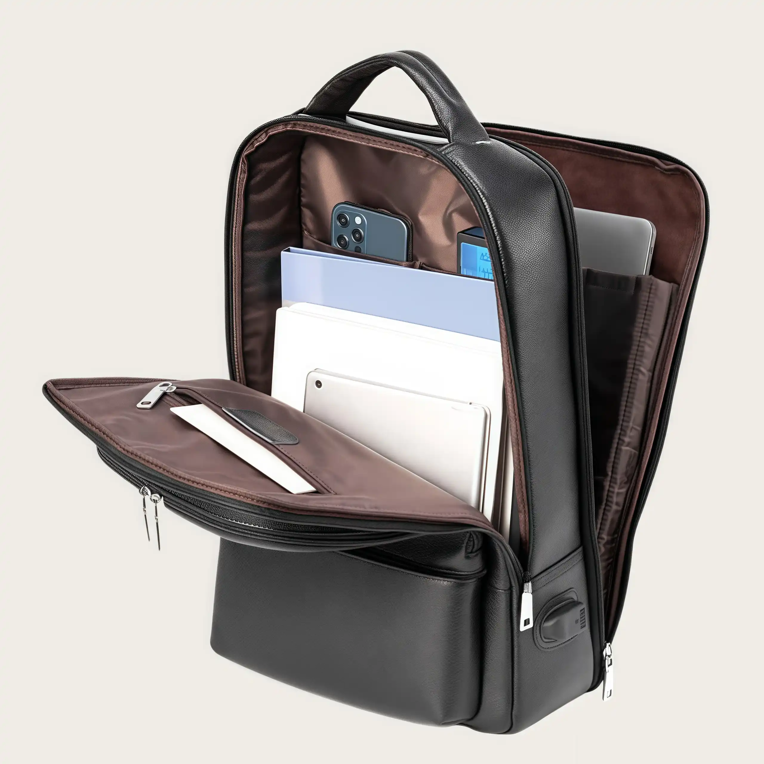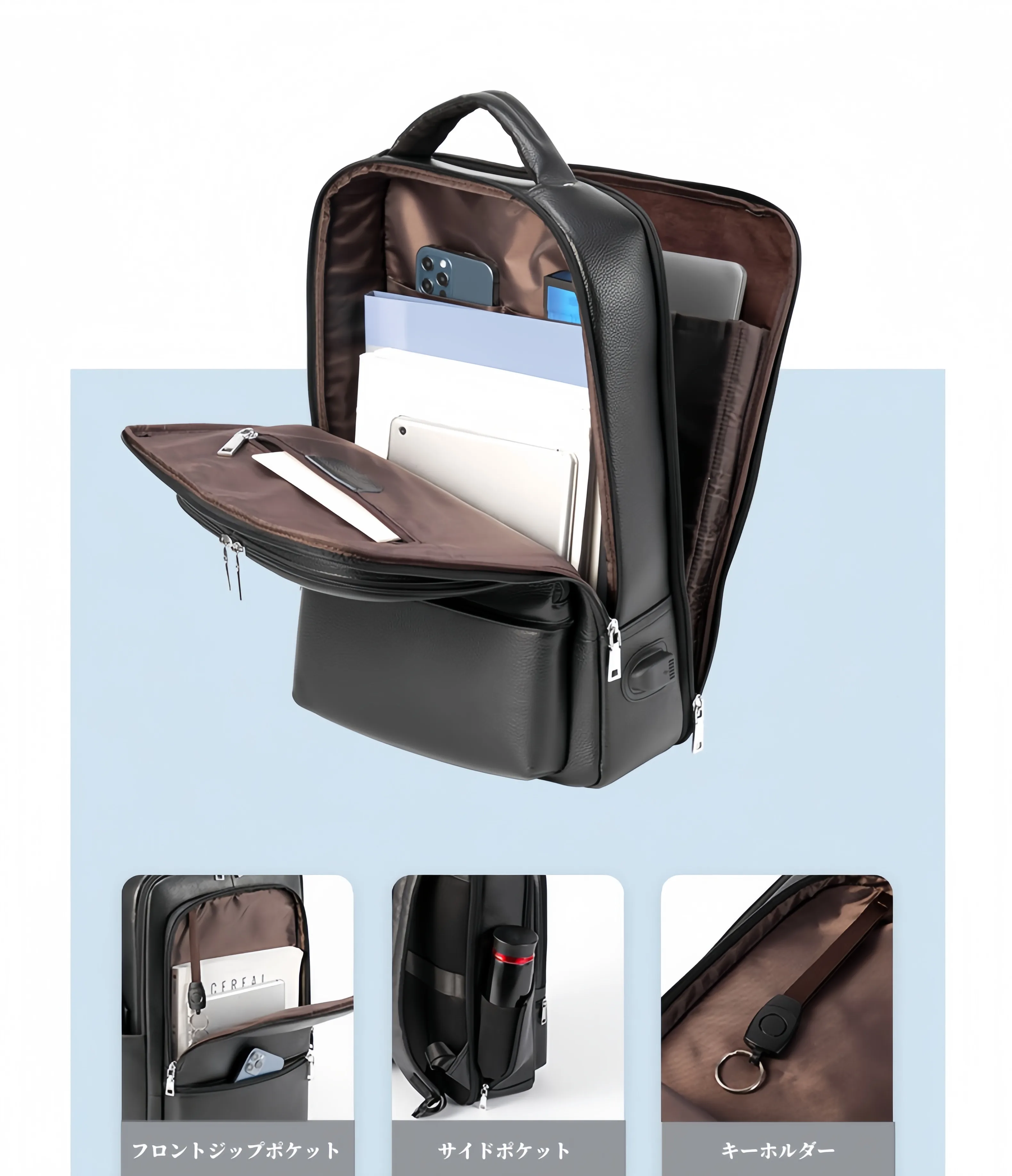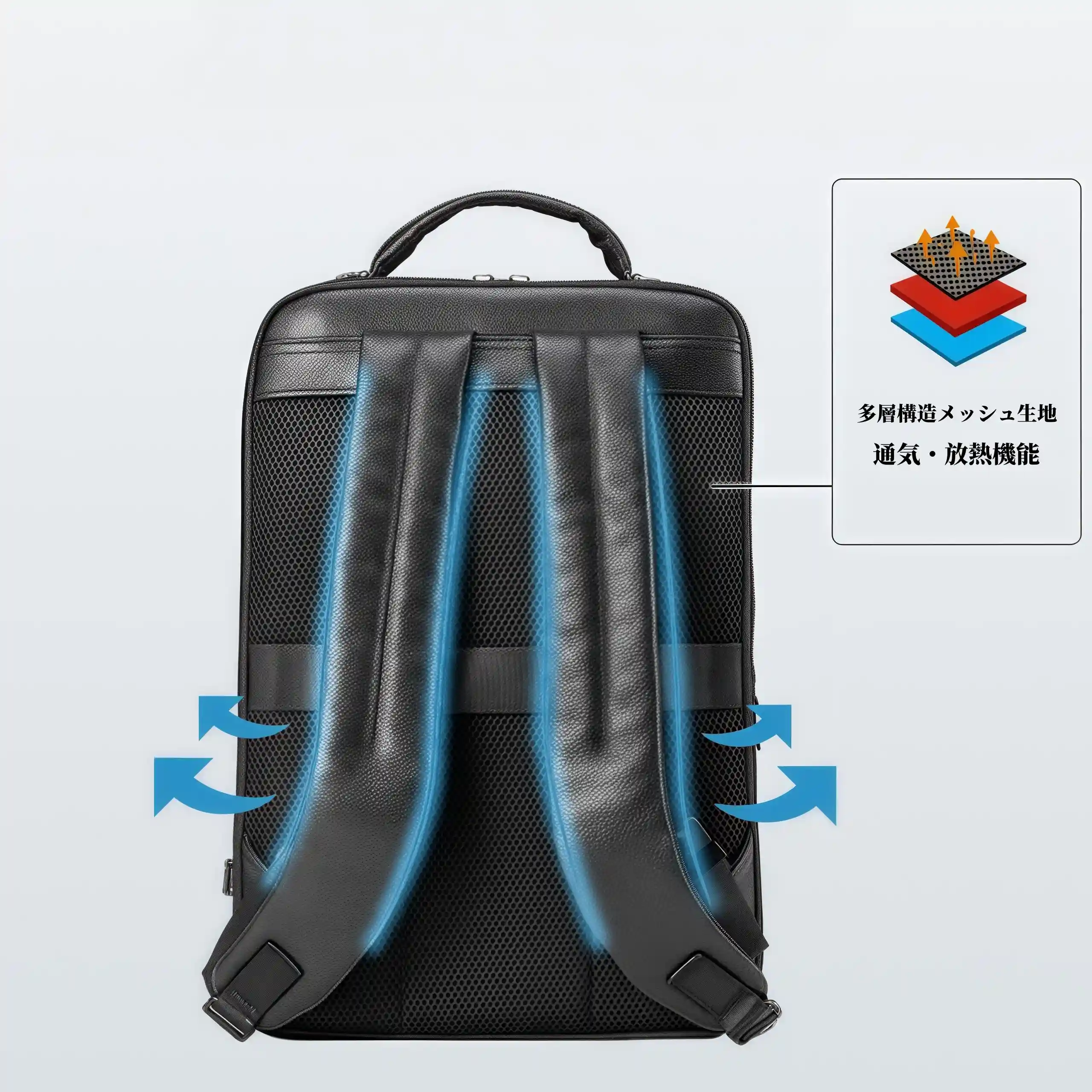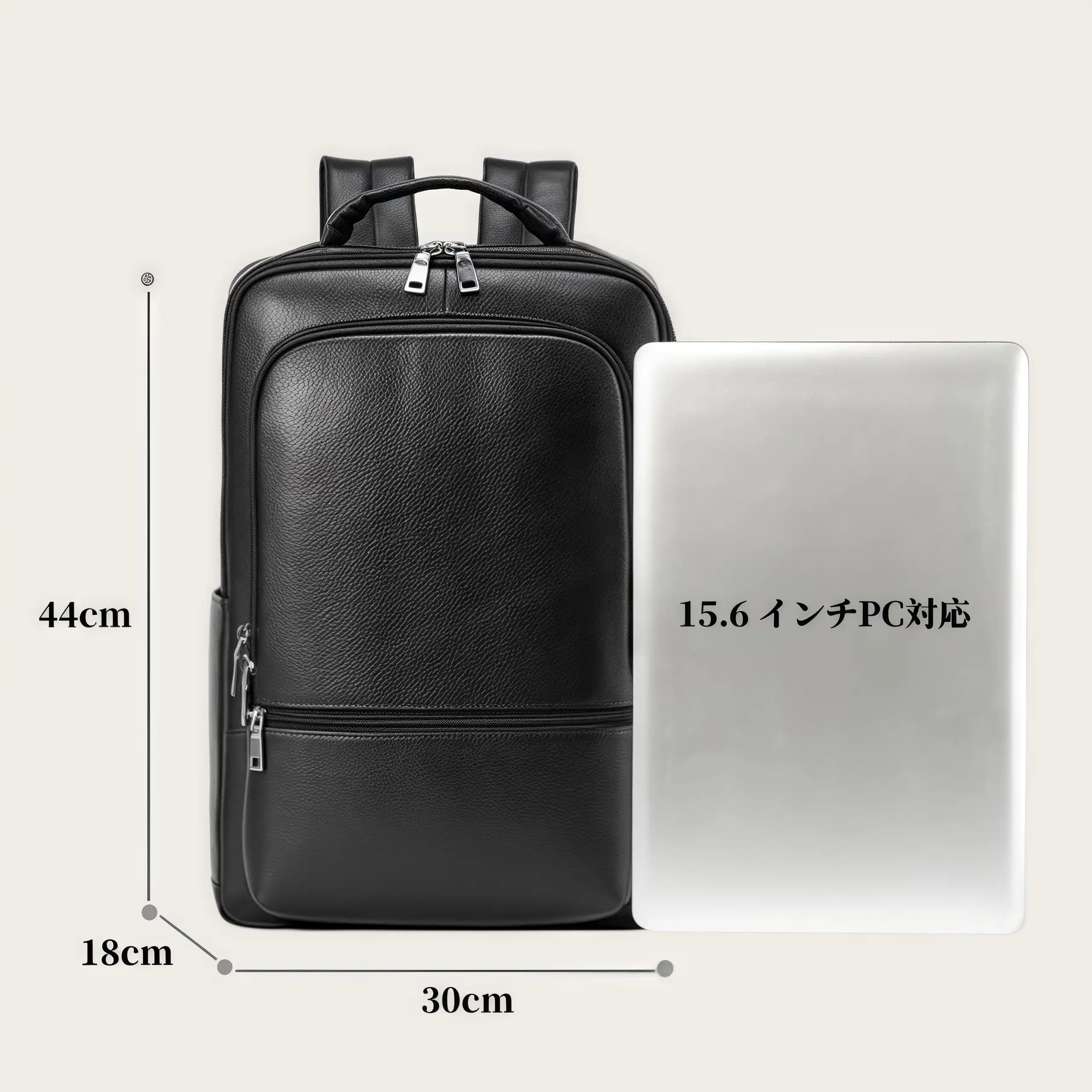 【シンプルヴィンテージ風】牛革バックパック|通勤・ビジネス旅行に適した大容量仕様|15.6 インチ PC 収納可