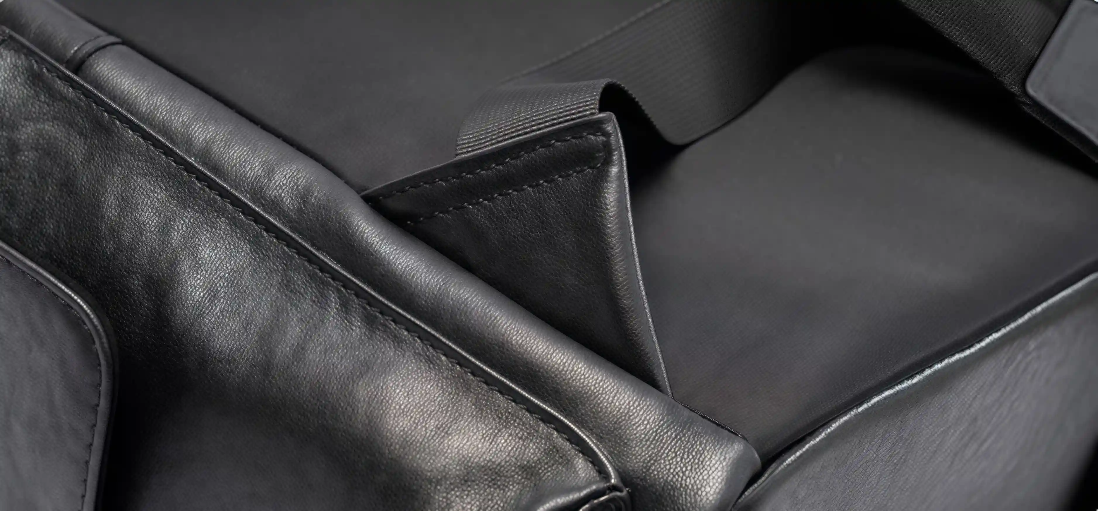 ショルダーストラップに二重リベットで補強を施し、ストラップの耐荷重性とバッグの耐用年数を向上させています。