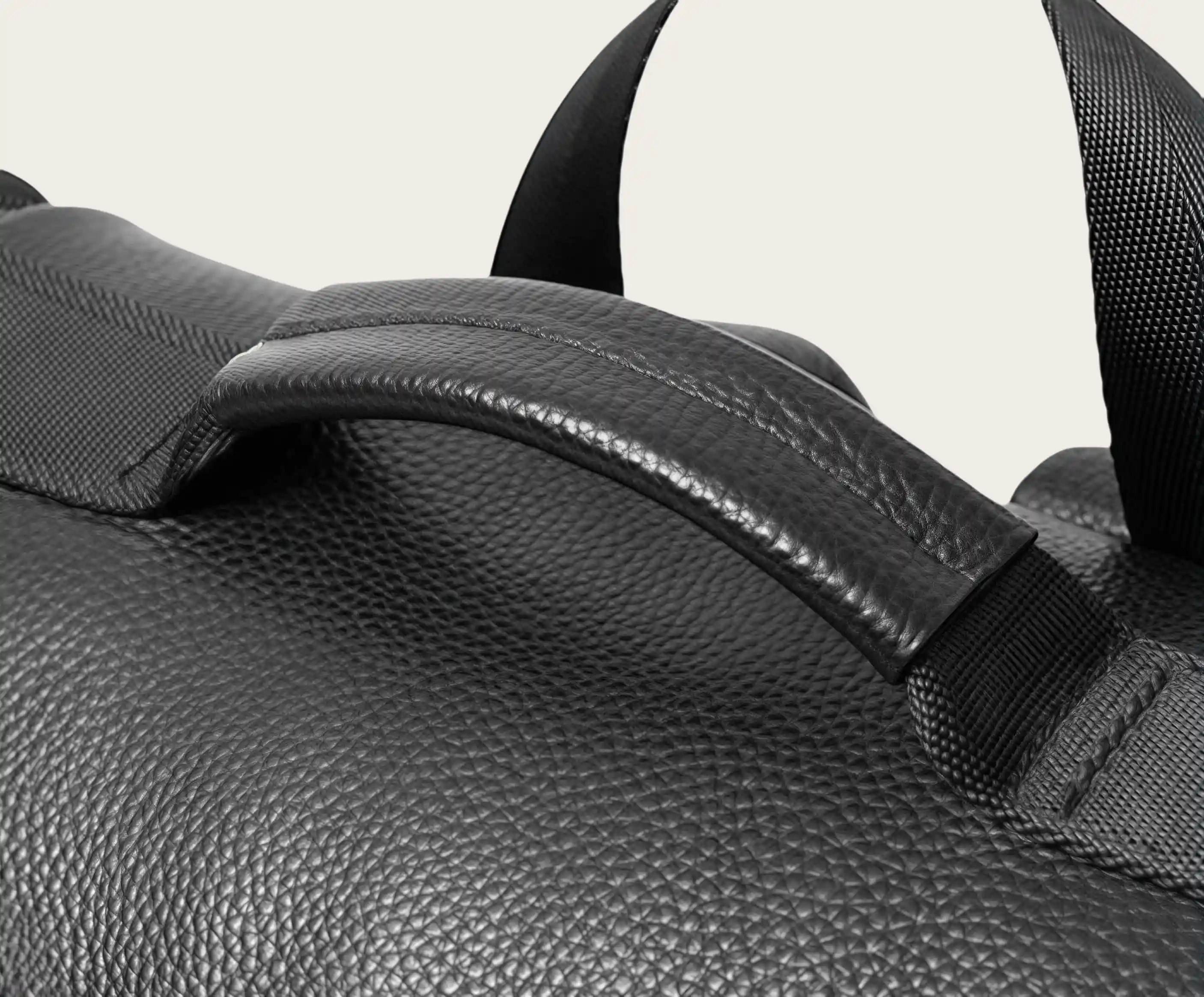 強化牛革製ハンドル。