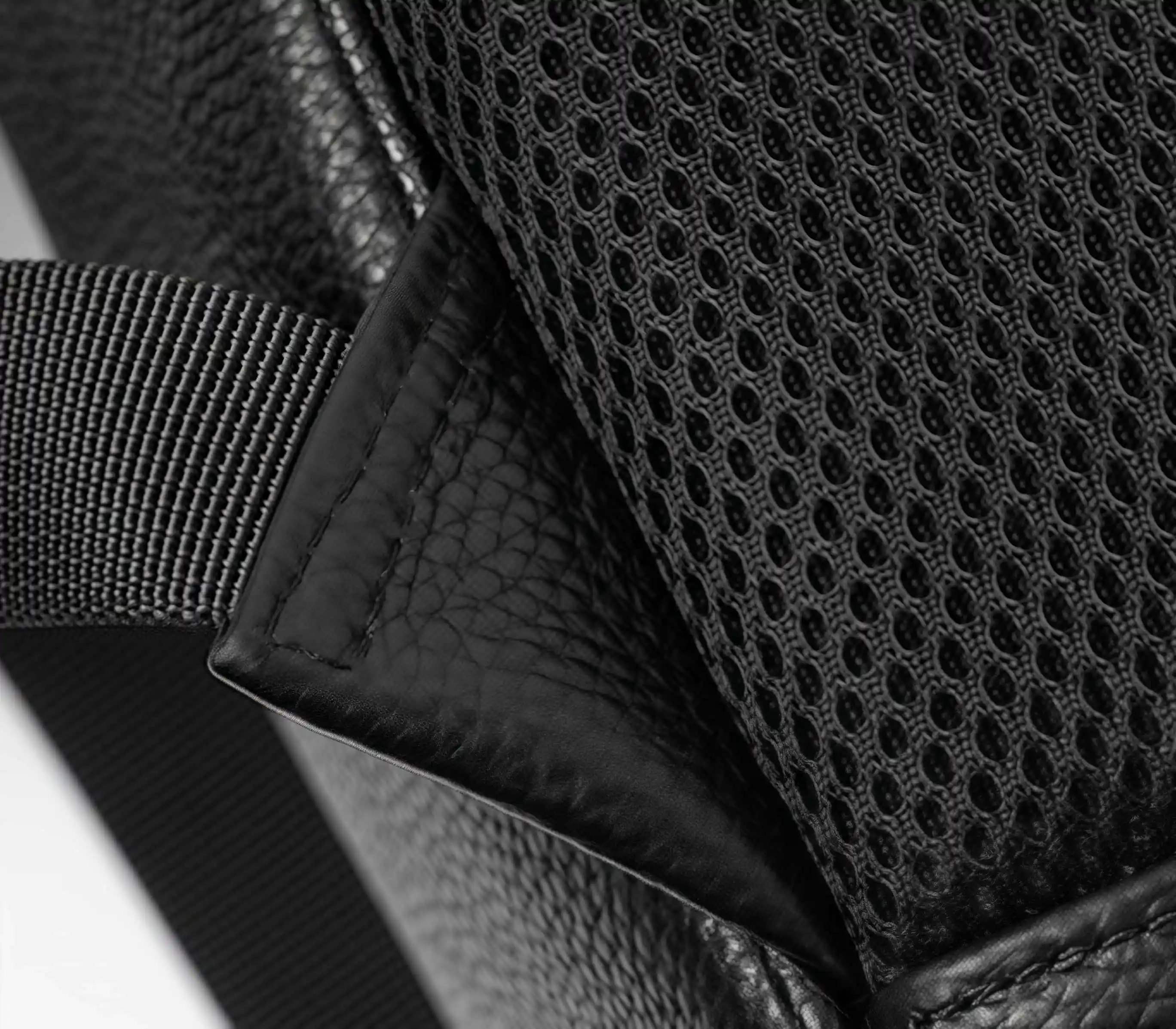 ショルダーストラップに二重リベットで補強を施し、ストラップの耐荷重性とバッグの耐用年数を向上させています。