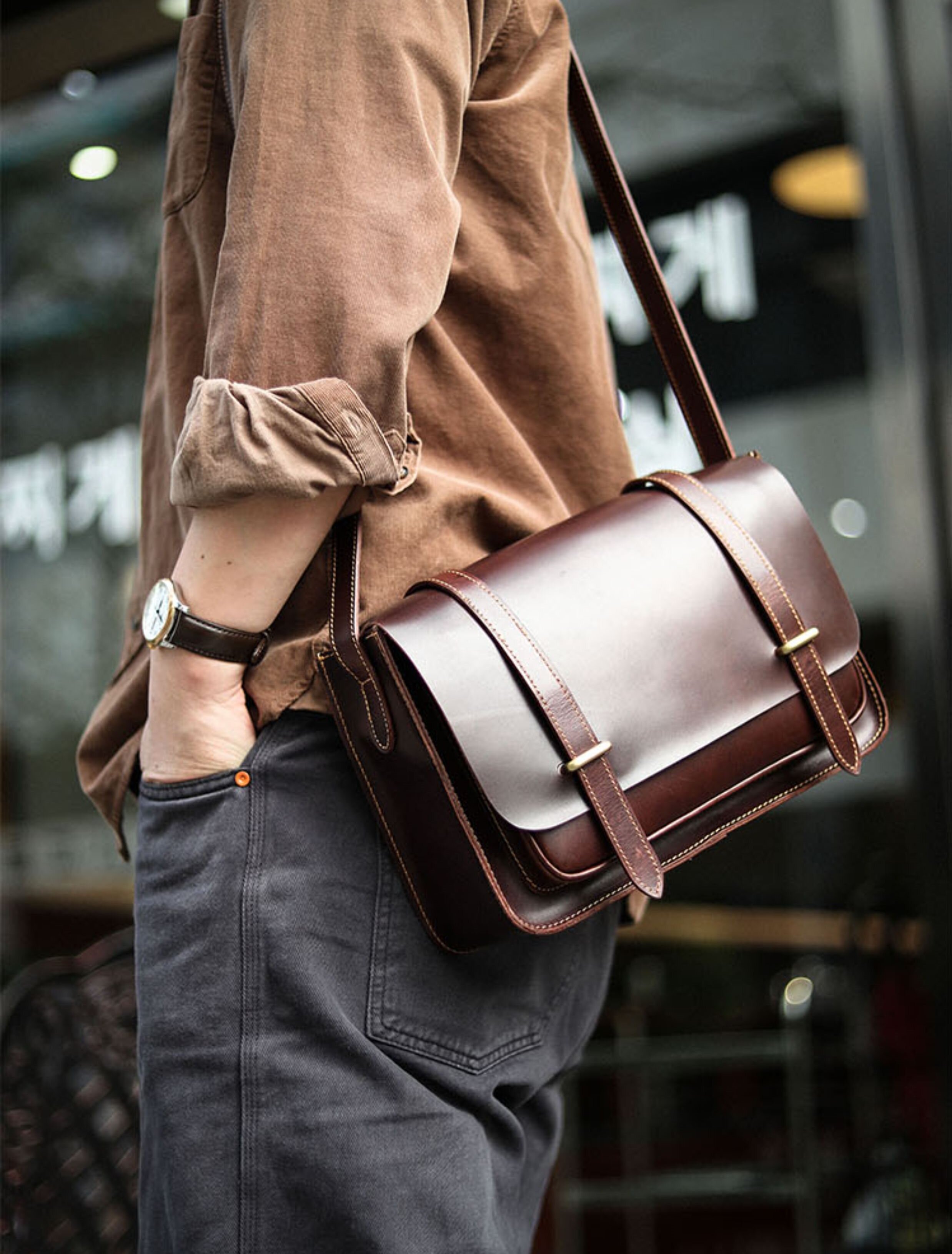 オイルワックス天然牛革のレトロショルダーバッグ-XK308900HD