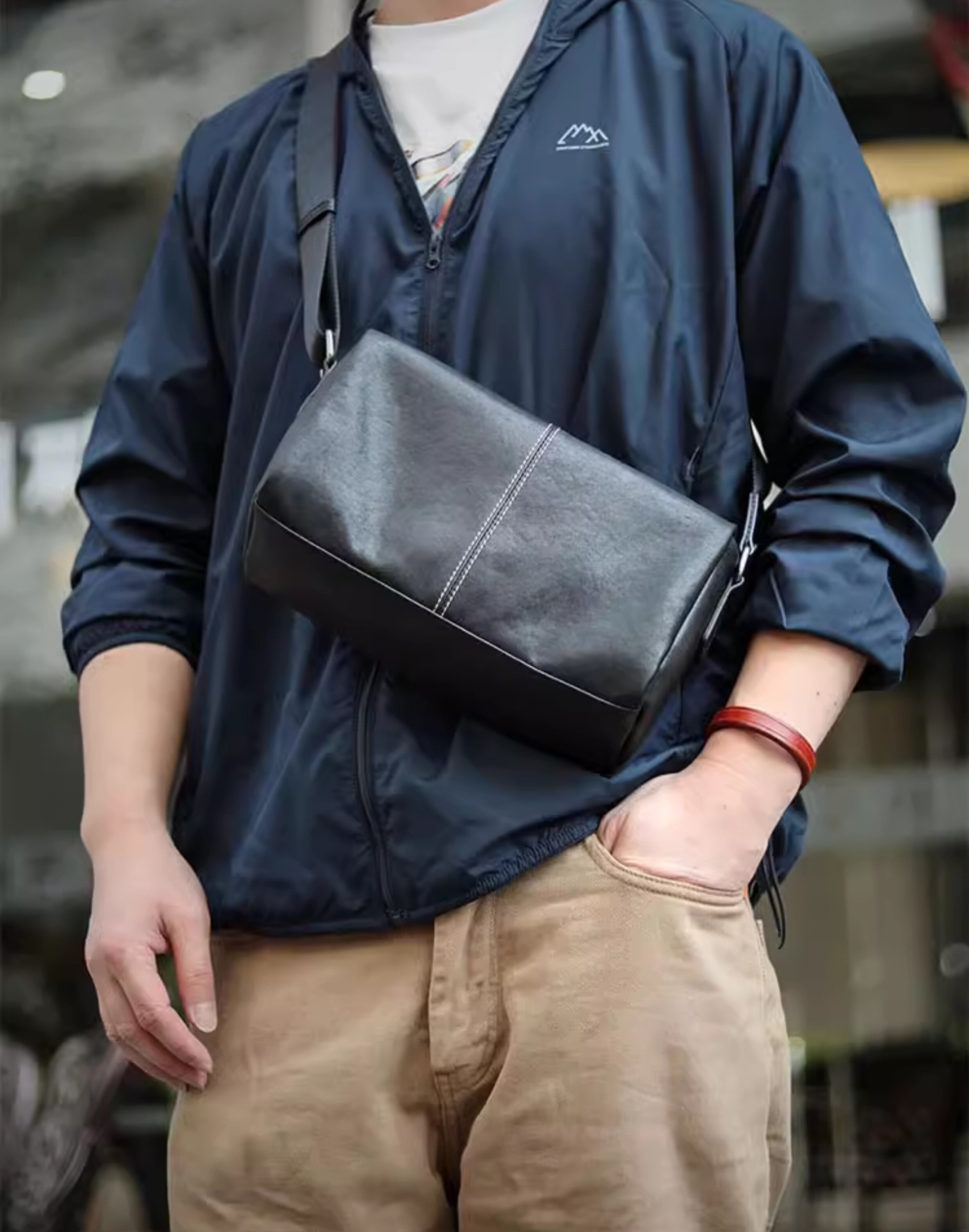 植物タンニン鞣しの天然牛革クロスボディバッグ/クラッチバッグ