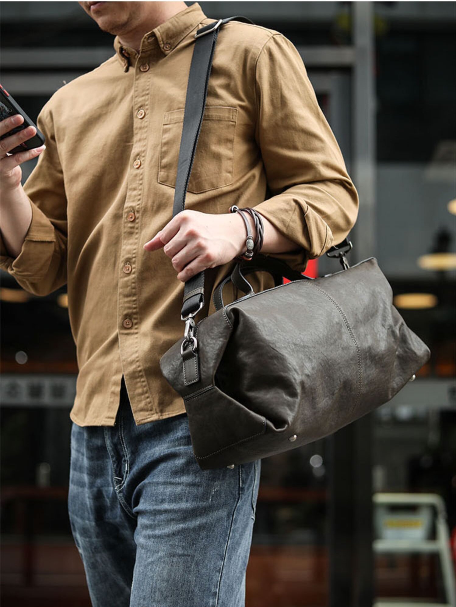 植物タンニン鞣しの天然牛革ショルダーバッグジムバッグ -YD5098280HD